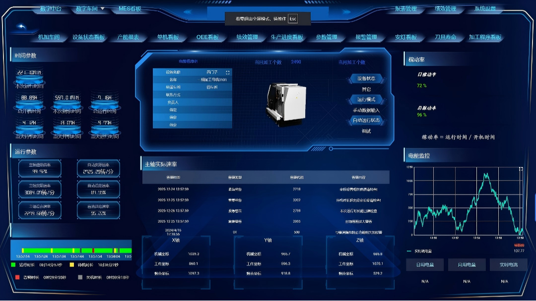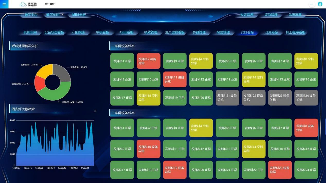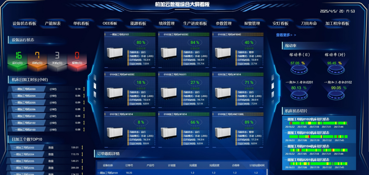 发那科、西门子、三菱同屏展示,实时状态、OEE、产量、报警,管理效率提升50%。